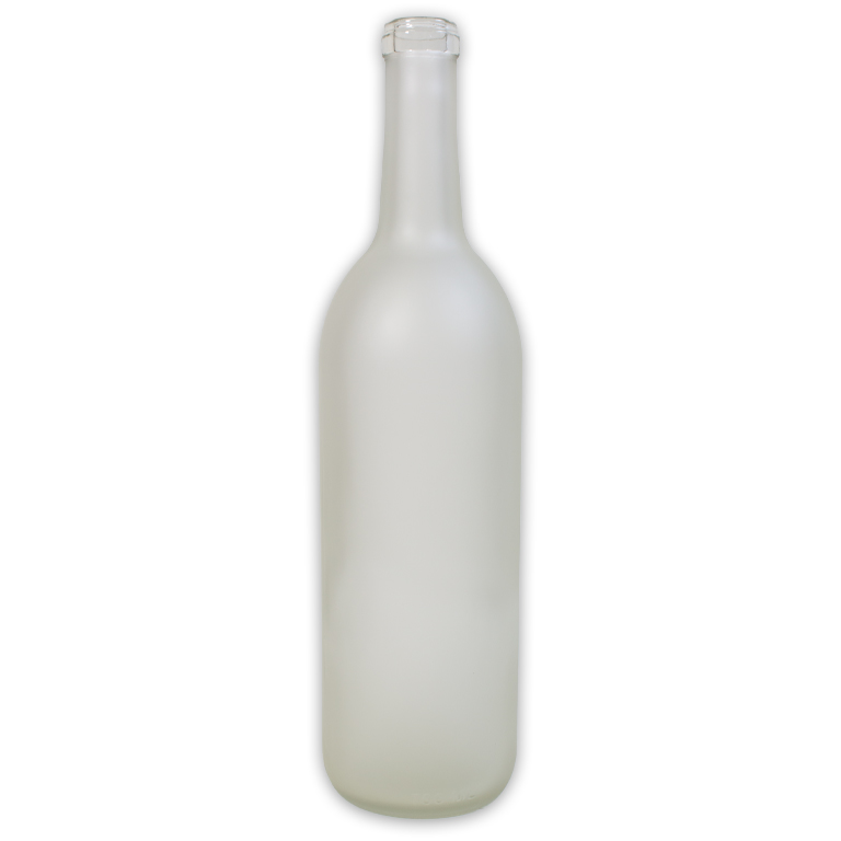 Choose this frosted Bordeaux bottle for an elegant look The etched glass helps the label stand out. This bottle features a flat bottom. Top it off w/a natural or synthetic cork.