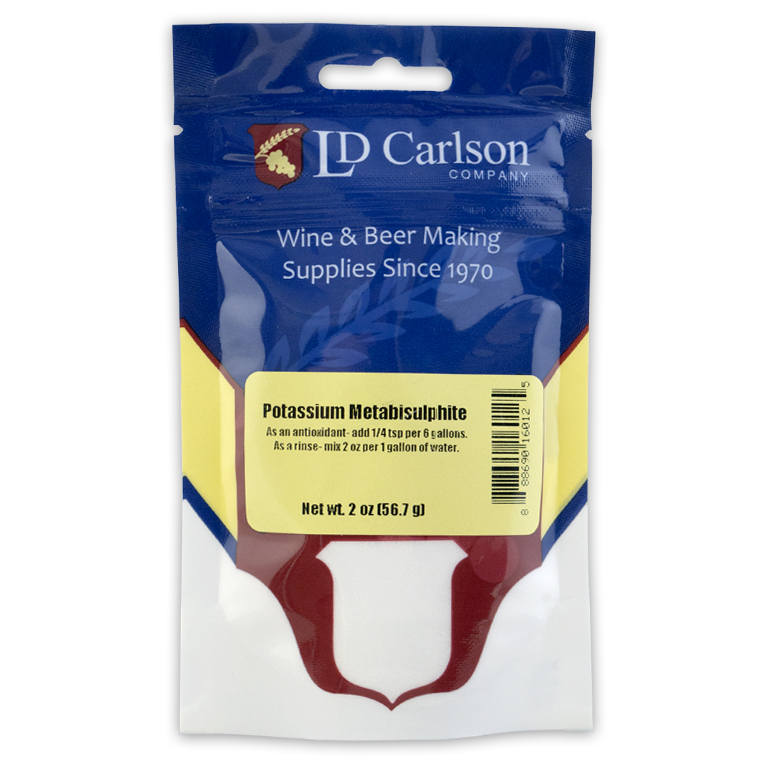Potassium Metabisulfite is a common additive used to preserve and stabilize wines, ciders, and occasionally beers. When added to wine or must, it forms sulfur dioxide gas (SO2). This prevents most wild microorganisms from growing and acts as a potent antioxidant, protecting both the color and delicate flavors of wine. As a sanitizer – use 2 oz per 1 gallon of water. As an antioxidant and bactericide – use 1/4 teaspoon to 6 gallons. Dissolve sulphite in warm water before adding.