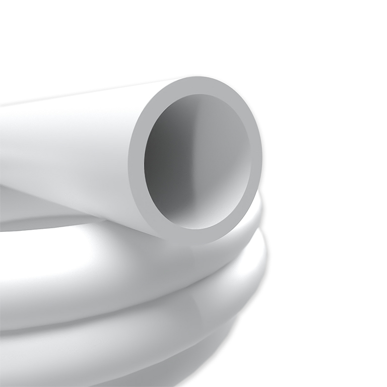 Made from FDA-sanctioned ingredients able to resist extreme temperature variation: -100°F to 500°F. Translucent natural color for visual contact with the flow. Resilient, stretchable, and resistant to compression. Odorless, tasteless and inert. Good electrical and weatherability properties, resists U.V., ozone, gases, and moisture. Certified by the National Sanitation Foundation (NSF-51) for food equipment materials[U]. Max PSI at 70°F: 10 PSI