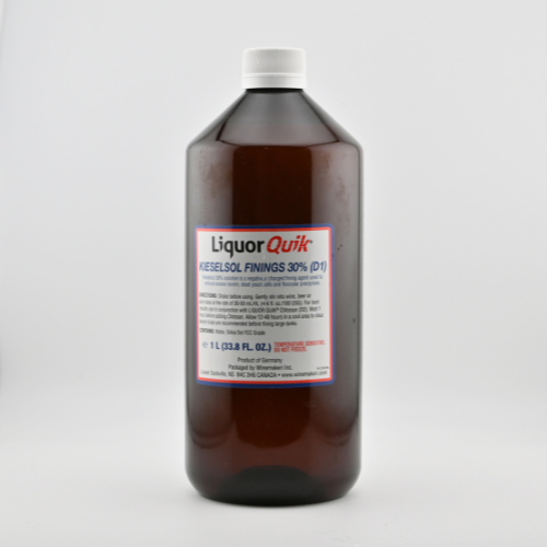 Kieselsol is a silica gel particularly effective as a fining agent for low-tannin wines, often used in conjunction with gelatin. In convenient 1 Liter size