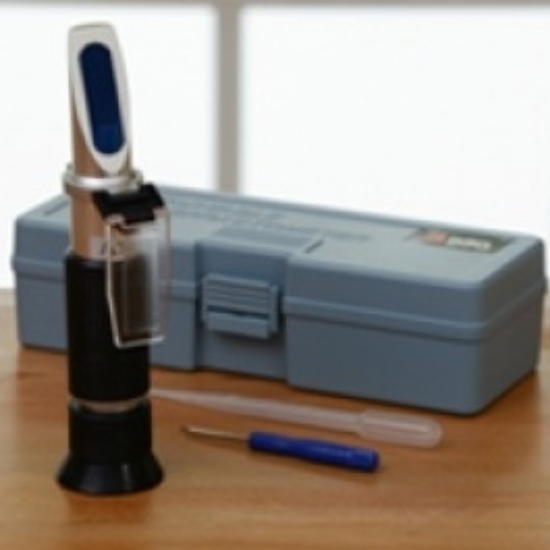 Refractometers are excellent tools to determine the density of unfermented wort or must, providing quick and accurate readings with only a few drops of sample fluid. This all-aluminum body handheld version is packed with features to make it perfect for both brewers and winemakers. The refractometer reports measurements in both °Brix and Specific Gravity, and automatically compensates for temperature. The display has an adjustable focus lens, so there is no need to try and look through the eyepiece while wearing glasses. It is made of durable, lightweight materials, and comes with a protective, hard-shell case, a drop applicator, and a screwdriver in case manual calibration is desired.
